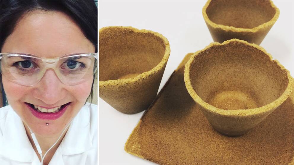 Förpackningar och muggar som går att äta upp efter att de använts. Forskare vid Högskolan i Borås har lyckats att göra bioplast av äpple- och apelsinrester.